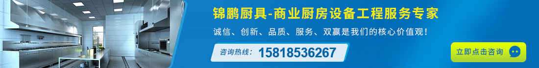 錦鵬廚具是一家專(zhuān)業(yè)從事星級(jí)酒樓、食堂、學(xué)校、餐廳、工廠、機(jī)關(guān)、醫(yī)院等商用中央廚房設(shè)備工程設(shè)計(jì)售后維修保養(yǎng)為一體的現(xiàn)代化企業(yè),廚具設(shè)備廠家。承接不銹鋼廚房廚具、酒店廚房設(shè)備工程、不銹鋼廚房設(shè)備工程、商用廚房工程設(shè)計(jì)及制冷制熱系統(tǒng)工程。業(yè)務(wù)范圍覆蓋廣州、深圳、東莞、佛山、惠州等地,公司依據(jù)客戶要求和現(xiàn)場(chǎng)實(shí)際情況精心設(shè)計(jì),合理安排,創(chuàng)造節(jié)能環(huán)保優(yōu)質(zhì)產(chǎn)品和熱情服務(wù)。